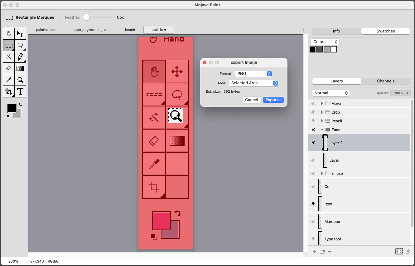 Just posted the 0.5 alpha release of Mojave Paint. Some good stuff in here! Such as: - Color and gradient swatches...